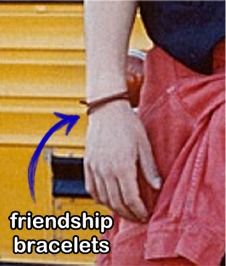 Like Bill, Ted wears friendship bracelets on his right