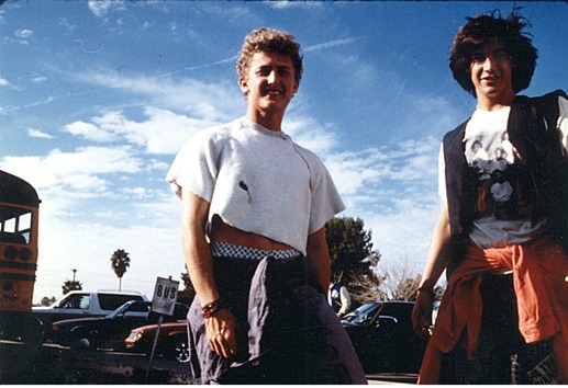 We believe a few scenes from the original script were actually filmed for the original cut of Excellent Adventure. These scenes show Bill and Ted arriving at school in the bus and greeting the popular kids (Biff and Ox included) only to be told they are cretins (they proclaim this "Excellent!", thinking it's a compliment). Later Bill and Ted attempt to ask two popular girls to the prom (flyers for the prom can be seen stuck to the lockers in the photos above) and are turned down.