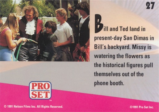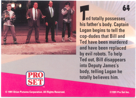 A most amazing set of collector's cards, these were a class act all the way. This is definitely one of the best of the Bill & Ted tie-in products. A special collectors card with Excellent Adventure on the front and Bogus Journey on the back was also available, possibly as a promotional item.