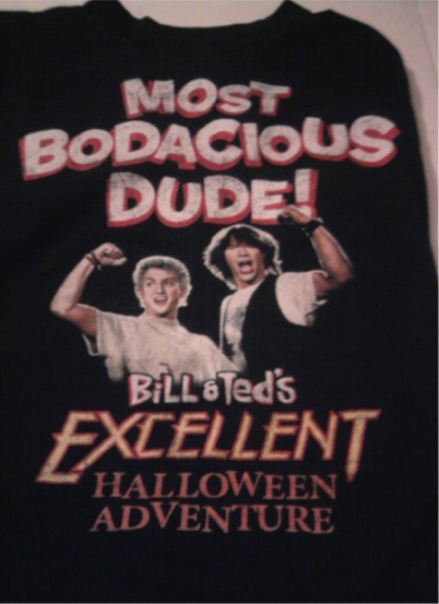 The excellent ~J dude sent in these photos of the 2001 Halloween Horror Nights Bill & Ted t-shirt, although he says