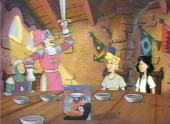 the cereal box cut in cleverly included in many shots, this is one of our favorites.