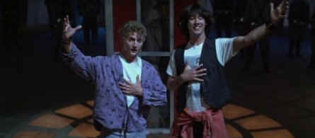 moment, then strikes a pose and offers, "Be excellent to each
