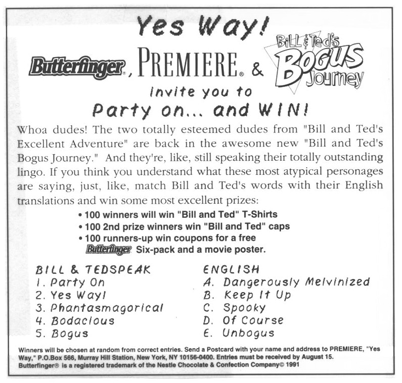 This contest for Bogus Journey was a collaboration between Premiere Magazine and Butterfingers.