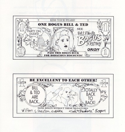 All it takes is to print up a bunch of "Bogus Bills and Teds" -- fake currency featuring the face of Evil Bill on one side and Evil Ted on the other. Just take the reproducible artwork on the next page to your local printer, and tell him to, "Mint on, dude!"