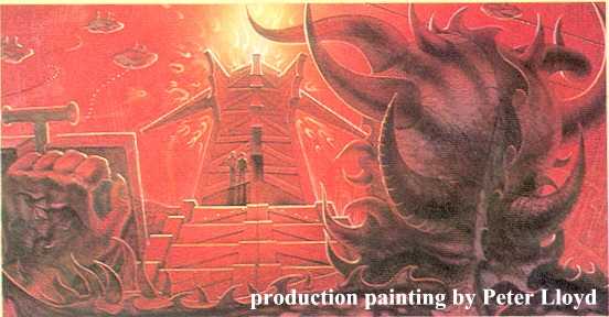 "One major concern was that the scale of the whole thing not eclipse Bill and Ted, which would defeat the whole purpose of the film," said the director. "I kept my eye on that very carefully. For that reason, the film is not ?jokey? or ?gaggy? - it?s going to be incredibly funny, but it?s very straight-faced. All the sets are serious - the humor comes from Bill and Ted goofing off in a ?real? Heaven and a ?real? Hell. There?s far more mileage in that approach. Doing it that way, you can be much bigger and not eclipse the two guys, because you?ve got this huge raging vista that is Hell and into it come these two bright, colorful dots that are Bill and Ted. Whereas if you have a bright, colorful Bill-and-Ted- type Hell, you?d never notice them.