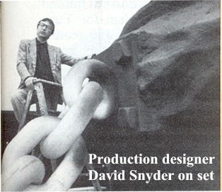 Effects supervisor Richard Yuricich, perched atop one of the studio buildings, trained his camera down on doubles for Winter and Reeves? standing on a rusty-red, metallic platform. The shot provides an over-the-shoulder view from behind a towering demonic figure as he peers down at Bill and Ted. The problem for Yuricich, besides time and geometry, is getting a steady image which will register seamlessly with the optical elements to be added later.