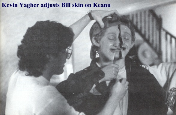 One of Yagher?s more prominent contributions to the sequel is "Station," a Martian ally Bill and Ted find in Heaven and bring to Earth to help defeat their robot duplicates. Named after the only word the character speaks (although the meaning, apparently is always different), Station is actually two identical small characters, a sort of Tweedle-Dee-Tweed-Dum, who fuse together. "They?re full-body, foam rubber suits with little actors inside," said Yagher. "When they fuse we have a tall actor inside a suit with a sleeker - looking design."