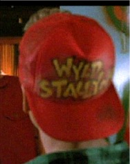 Finally you'll need to find a red baseball cap which Bill wears backwards on his head (with the bill toward the back). Bill has the Wyld Stallyns logo on the front of this cap but since he wears it backwards the logo is to his back as well. Use the logo below as a guide to how the logo should look. You can find a red baseball cap just about anywhere, and it's not too difficult to paint the logo on the cap using yellow and black fabric paint or even just acrylic craft paints. There are several ways you can transfer the logo onto your cap . . . there are some paints available where you can paint on the back of the sheet of paper and then iron the paint to your project to use as a guide. There are also computer programs that will help you prep a design to iron onto a project (it's best if you just plan to use these as guides and hand paint the logo so that it will come out brightly. It might take several coats for the yellow paint to cover up the red underneath it).
