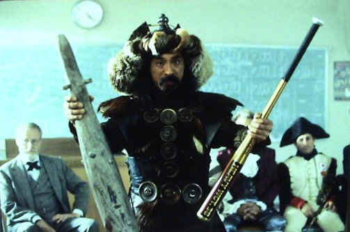 We're not positive, but in the original script there was more involvement with the two cavemen who only appear briefly in the final cut of the film when the dudes and the historical figures are stranded in prehistoric times. The photo above where the cavemen are approaching Ted and Beethoven seems to prove this out. Also Ted is seen holding a clipboard, which likely included a list of the historical figures collected and presumably notes for their report.