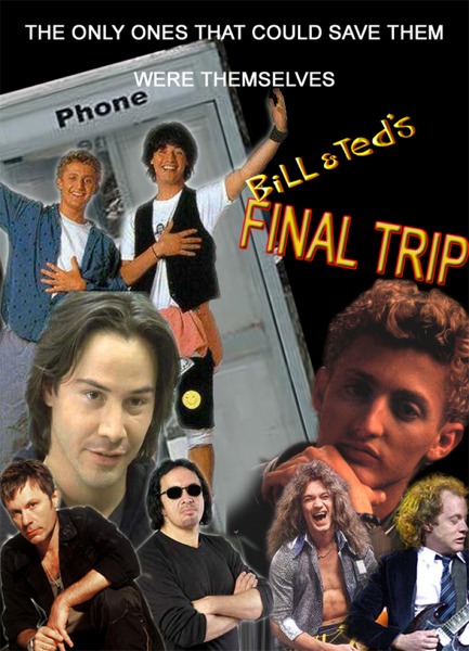 The most excellent Elliot Bobin posted this on our Forums recently: It is the year 2039 - Wyld Stallyns have rocked the world. The newly appointed Rulers of the World - Bill and Ted are swamped with the demands of making decisions for the whole earth. They travel through time collection the most outstanding Rock legends of the past to help them in their time of need - Including their idols - Eddy Van Halen, Bruce Dickingson, Gene Simmons, Angus Young etc. But the clash of so many rockstar egos means nothing ever gets done. There are only two people who can save the planet - Bill and Ted. Before they became the most excellent band in the world! After being contacted by Rufus the duo travel forward to save their future selves from a most heinous disaster.