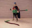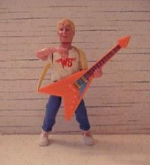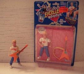 Sadly these action figures seemed to be a somewhat misguided effort. It's highly unlikely that kids would want to sit around and play with action figures of Bill & Ted . . . they're more apt to want to role-play Bill & Ted themselves! Since the characters are not prone to violence, the traditional action figure play would not apply and I don't know anyone who would want to bother with the trouble of hooking the toys up to their speakers to make them play music (the novelty gets old fast and the figures would essentially be "tied down"). We're not sure what Kenner was thinking of with these toys, but they still remain good collector's items and frankly they do look pretty darn excellent sitting on a shelf, especially if you have the entire band assembled!