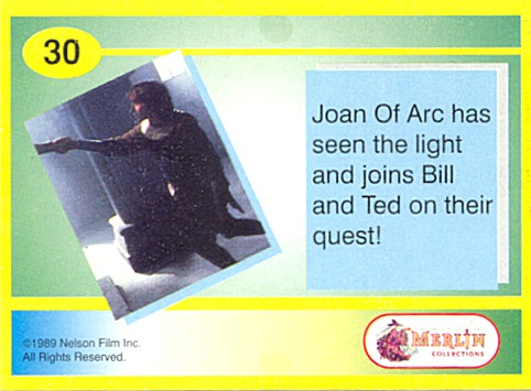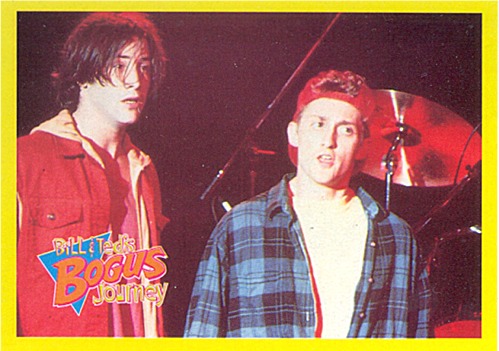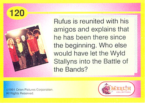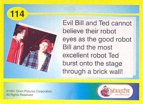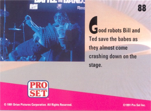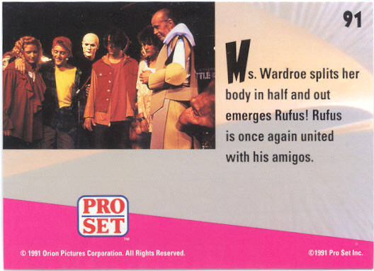 A most amazing set of collector's cards, these were a class act all the way. This is definitely one of the best of the Bill & Ted tie-in products. A special collectors card with Excellent Adventure on the front and Bogus Journey on the back was also available, possibly as a promotional item.