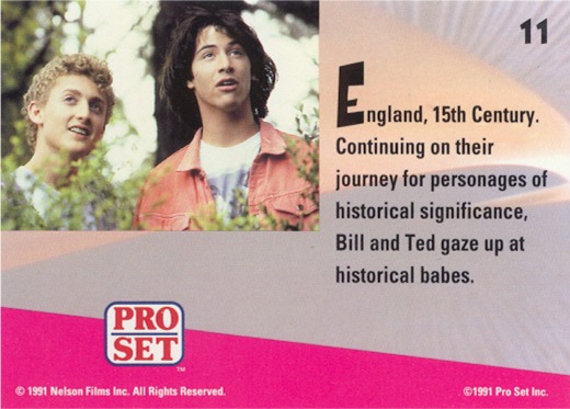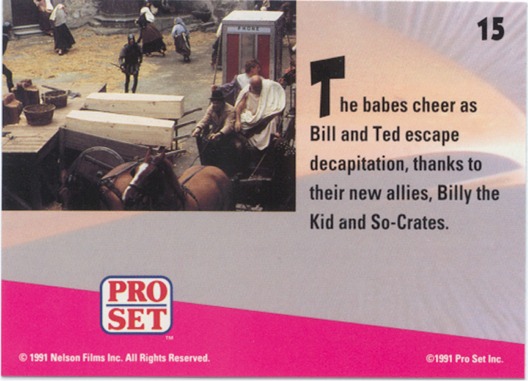 While the photos used are most outstanding the information on the back is a bit on the dull side. It might have been more fun to have a kind of larger photo to assemble or some interesting Bill & Ted facts instead. But these cards are pretty cool anyway!