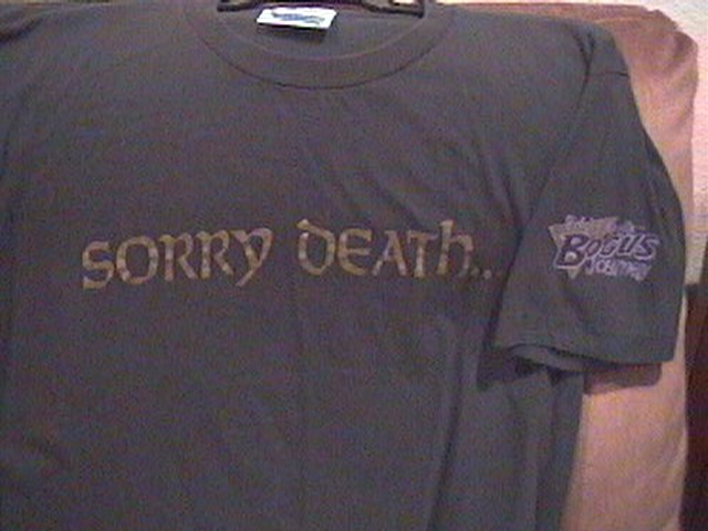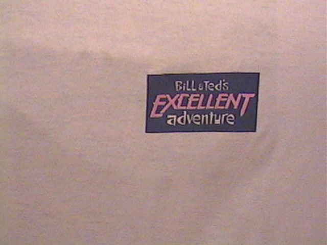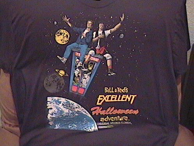 The excellent ~J dude sent in these photos of the 2001 Halloween Horror Nights Bill & Ted t-shirt, although he says