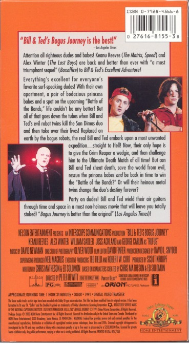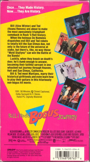 There have been many different releases of Excellent Adventure and Bogus Journey, both the movies and the soundtracks, in various forms. We don't even remotely have a complete list of all the released versions as well as those overseas, so if anyone can help out with scans or information about any releases not listed, please let us know!