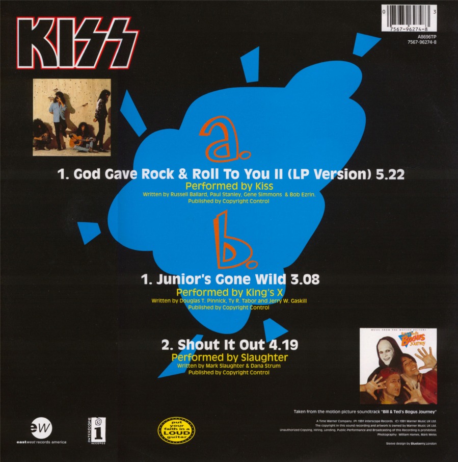 The outstanding Nick of London also sent us some stellar scans of a rare 12" Bogus Journey picture disc from 1991 published by EastWest records! Check out these pics, babes and dudes!!!