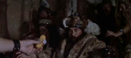 Khan?" Ted asks, "Say please!" Genghis Khan picks up his