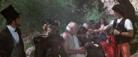 The scene dissolves to a bit later as Bill and Ted answer, "69,