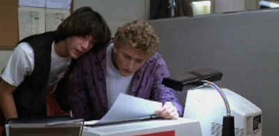 report," Ted suggests. "Ted, good thinking, dude!" Bill