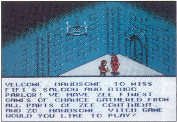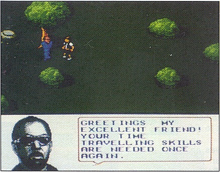 Buildings to enter in each of the five time periods often will present Bill or Ted somebody inside to talk to. You select Bill's or Ted's response from three choices. If what you make Bill or Ted say pleases the person being spoken to, a clue will be given. If, on the other hand, you irk him or her, the locals outside might turn aggressive and throw you in jail if they catch you.