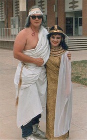Photo of Will Robbins (dressed as Socrates) with Traci Dawn Davis (as Cleopatra)